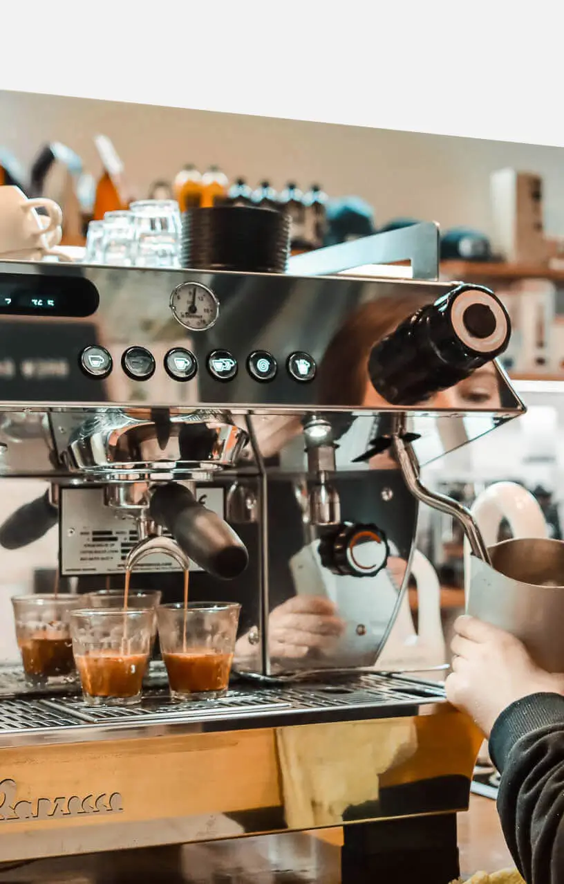 Separate boilers optimize espresso brewing and steam production.