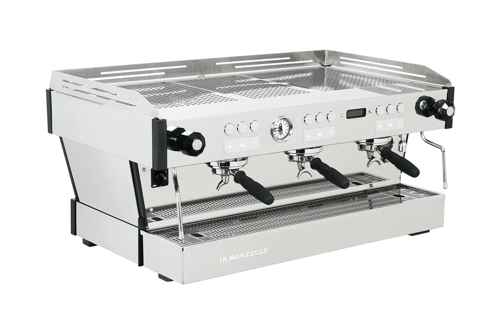 5 years after the launch of the Linea PB, which has become a trusted industry workhorse, La Marzocco introduced a version of the machine equipped with the most advanced La Marzocco technologies. These include pre-heating system, independent boilers, hot water mixing valve accessible from the side panel and Pro Touch steam wands. The Linea PB X features refreshed aesthetics based on the presence of barista lights as standard and white details such as logos, manometer, display lettering and keypads. The dynamic preheater ensures unmatched temperature stability, provides steady brew water and steam even at the peak of the morning rush. The Linea PB’s lower profile and increased work area also make it practical, without abandoning world renown Italian design.