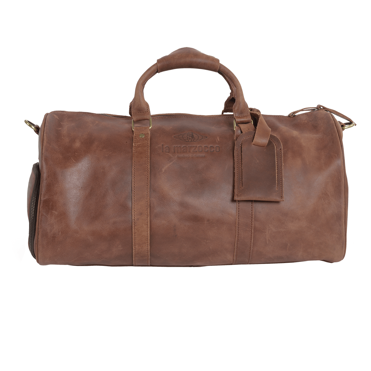 Perfect for your overnight trips away, this La Marzocco leather duffel bag is the stylish add to your travel essentials. It features an adjustable and removable shoulder strap and two inner pockets, perfect for travel in style and organization.