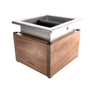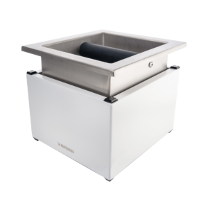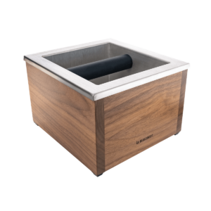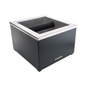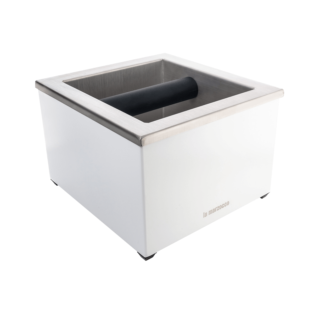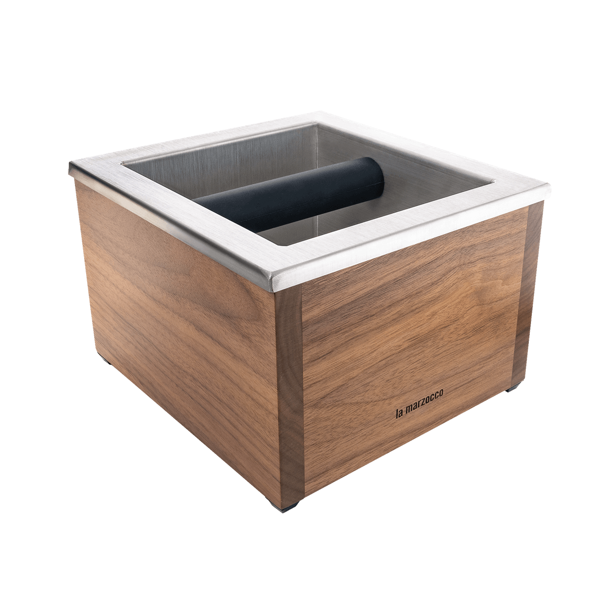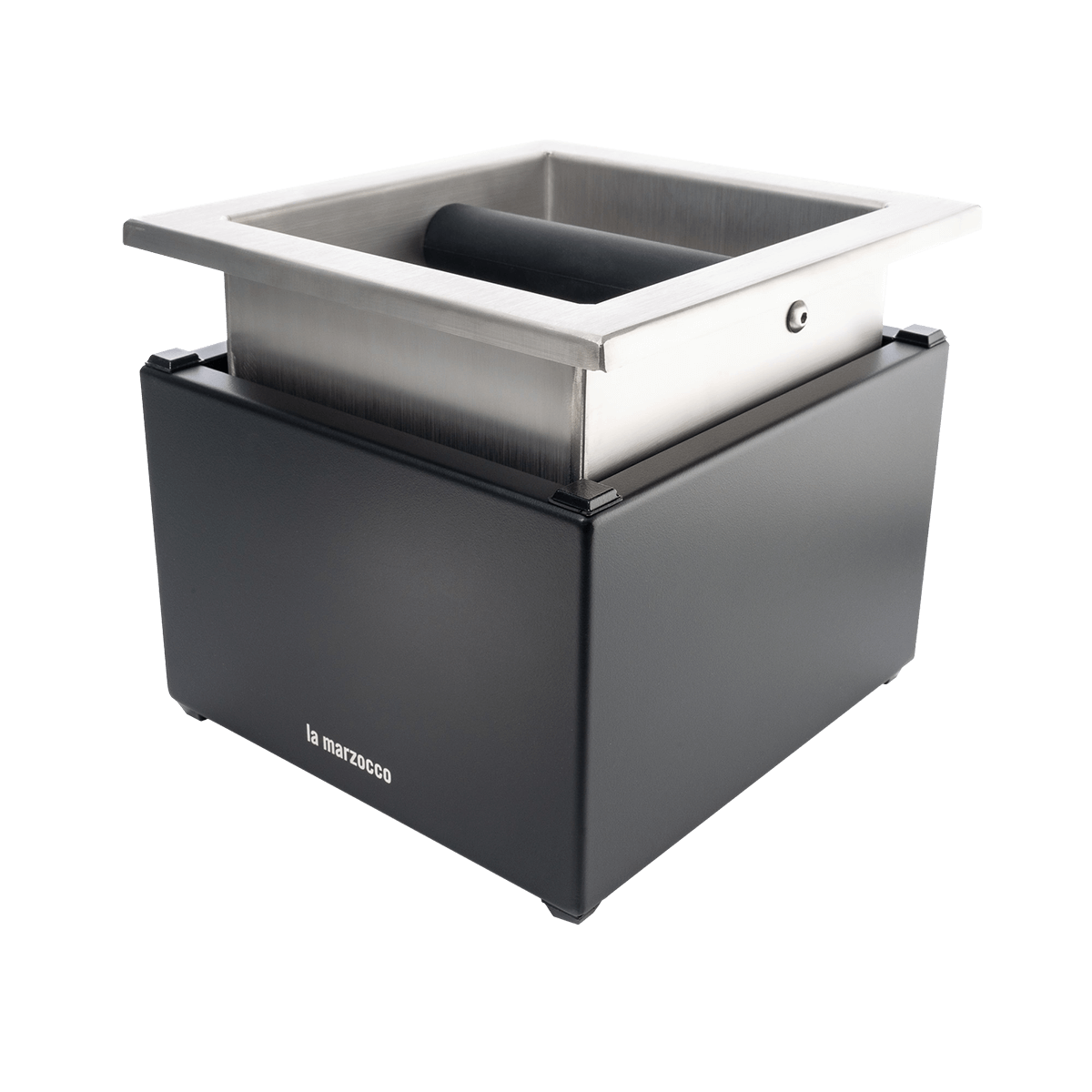 La Marzocco Knockbox. Industrial and elegant is the approach we took when creating this knockbox. The stainless-steel insert wraps the top edge to deliver a clean and crafted appearance. Its durability is concealed and includes a large diameter knock bar with stainless steel core and a heavy gauge stainless steel insert.