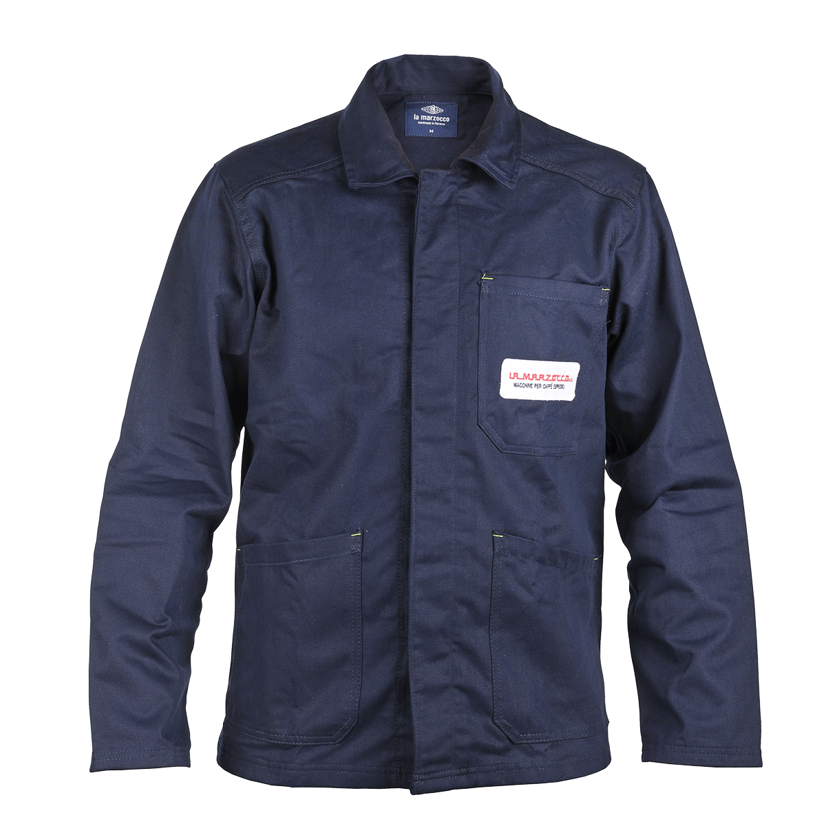 The old factory uniform, the same canvas jacket workers used to wear while assembling La Marzocco machines in the Nineties.